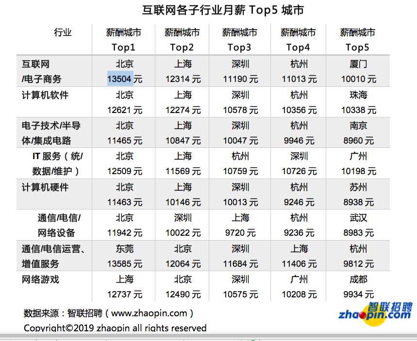 互联网近万月薪领先行业水平